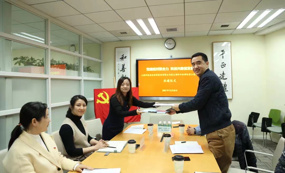 2021年12月24日,半岛·官方站线登入页面-半岛online(中国)党支部与平和教育集团第三党支部举行主题为“党建结对聚合力,科技兴教促发展”的结对共建仪式。共话科教合作新前景。